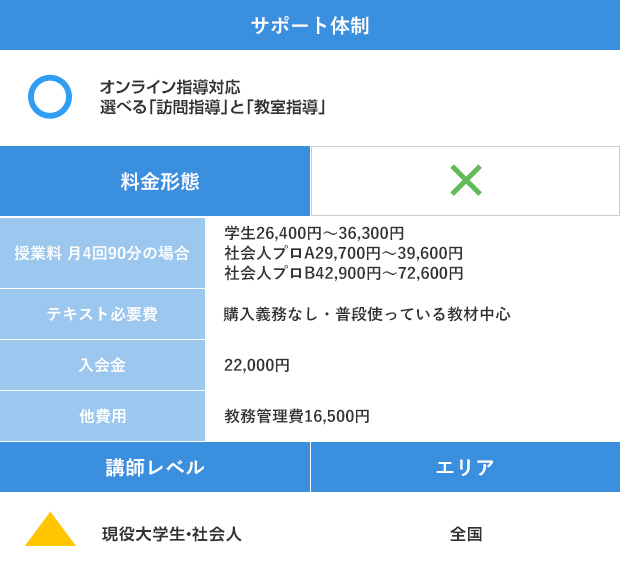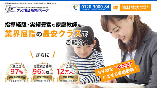 相性重視のマッチングで安心。1年以内の交代率わずか2%。料金は教師のレベルで変わりません。