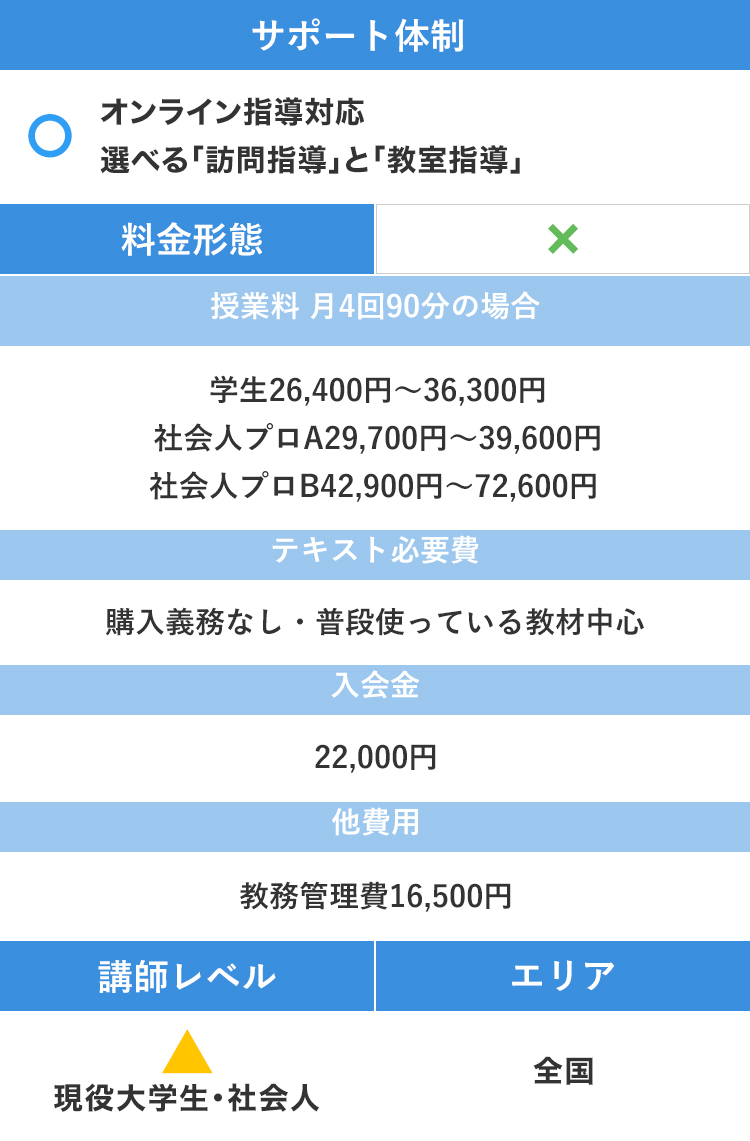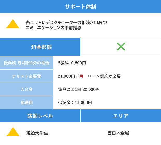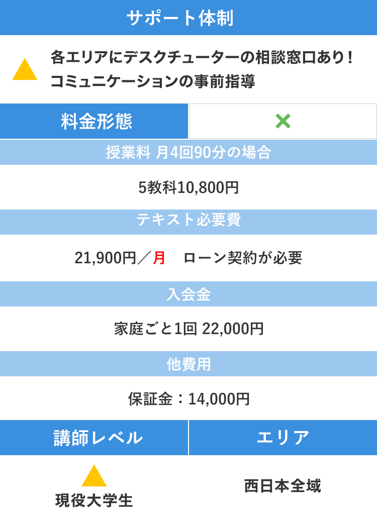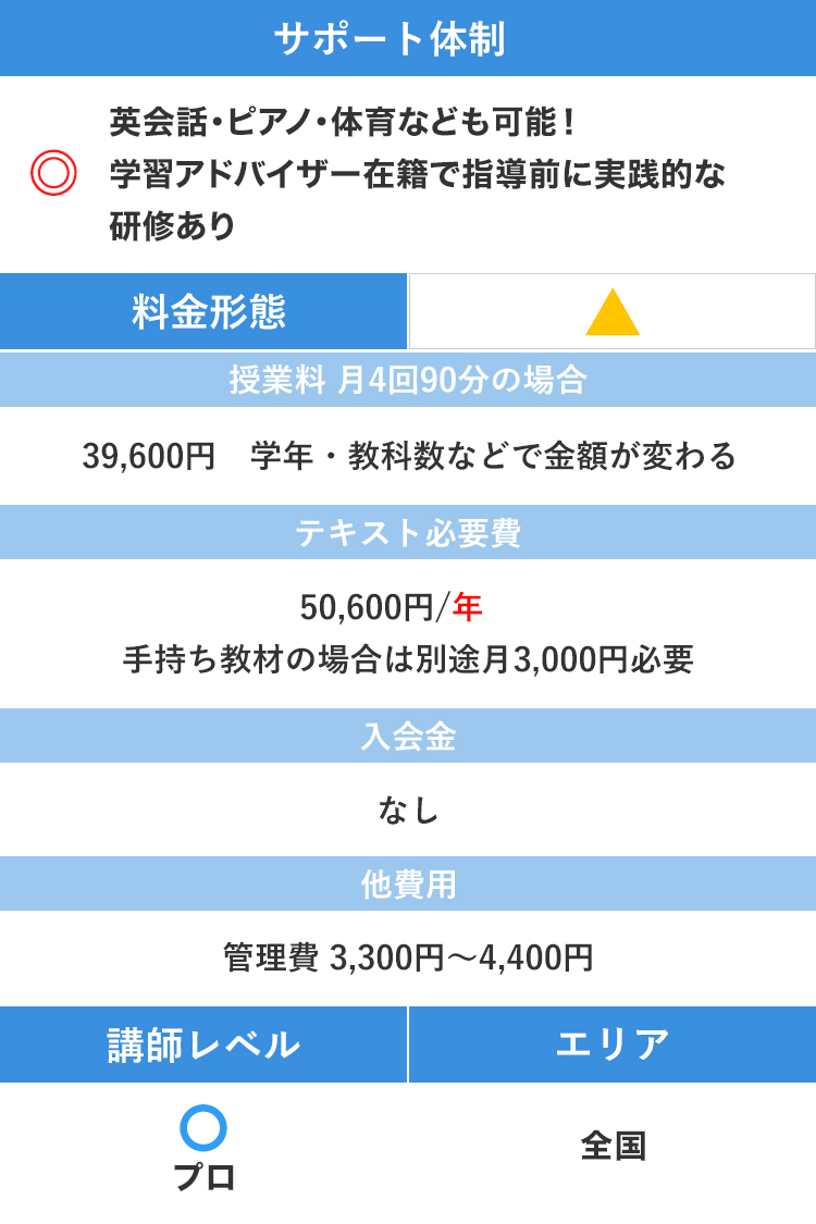 以前お願いしていた家庭教師よりも圧倒的に授業料が抑えられています。